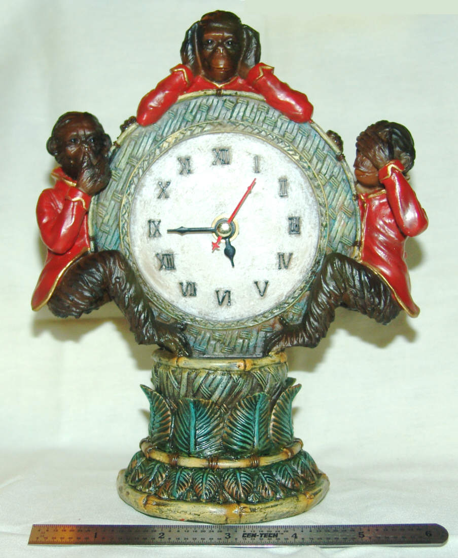 If they are really the 'no evil' monkeys, then what are they doing to that clock?