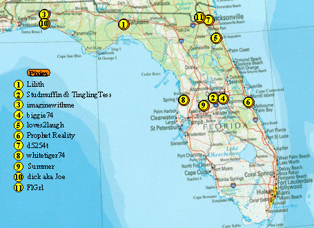 It appears this will have grave effects on more than one state. I am posting a map of the southeastern US with pixie location. While we know of members in the area that are not shown, this is current as of this posting. This area has 4 states with members that will be immediately effected. We look for the reports from those that have asked to be shown, but also hope to hear from the others we know are likely to be visited by Ivan.